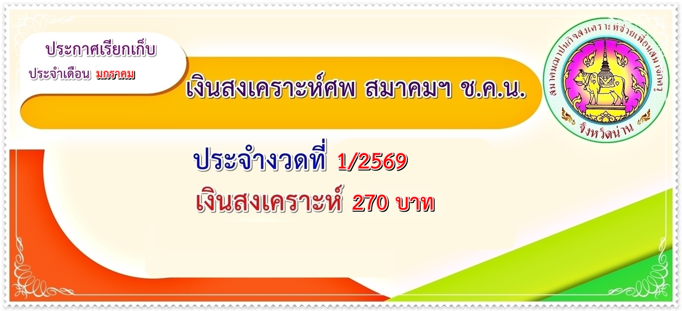 เรื่อง ประกาศสมาคมฯ ช.ค.น.ประจำเดือน ม.ค. 2569