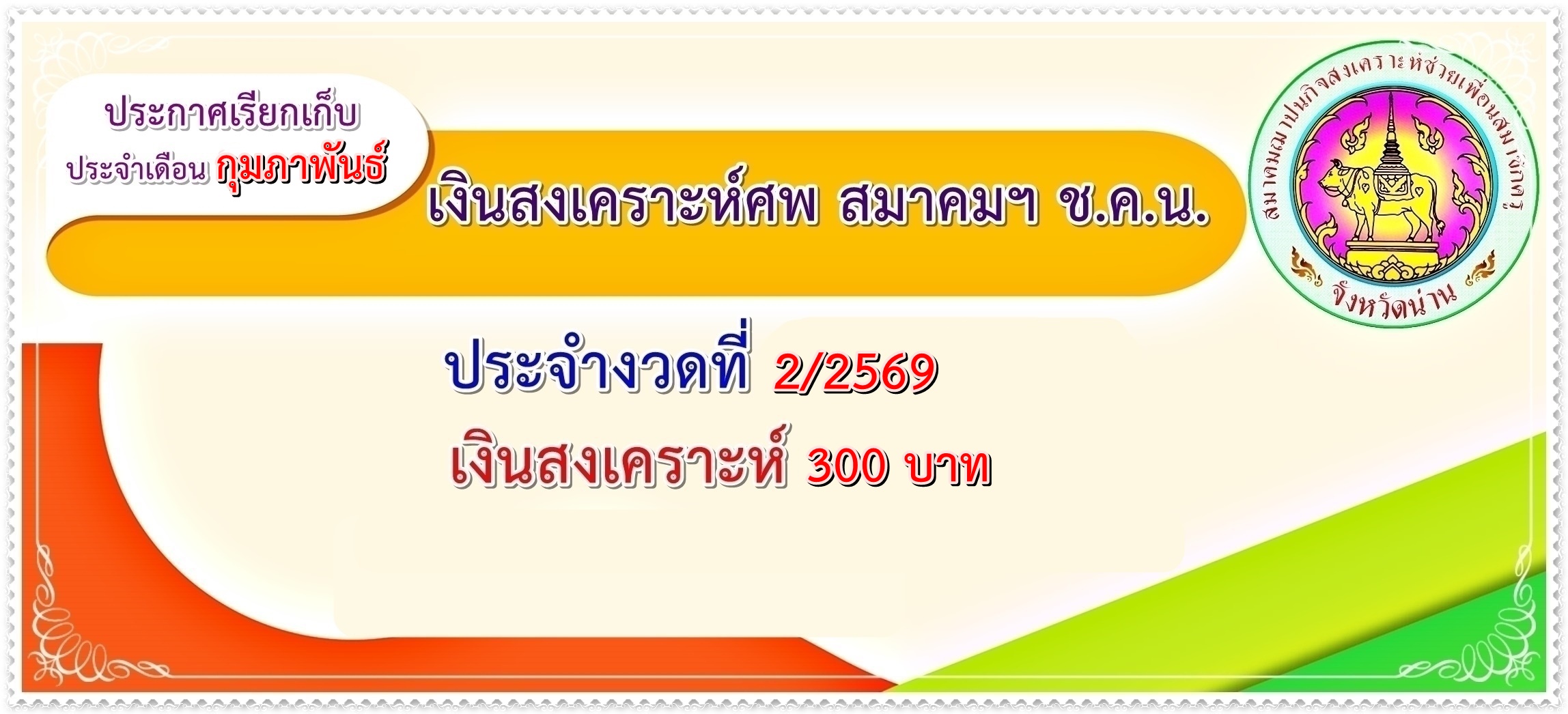 เรื่อง ประกาศสมาคมฯ ช.ค.น.ประจำเดือน ก.พ 2569
